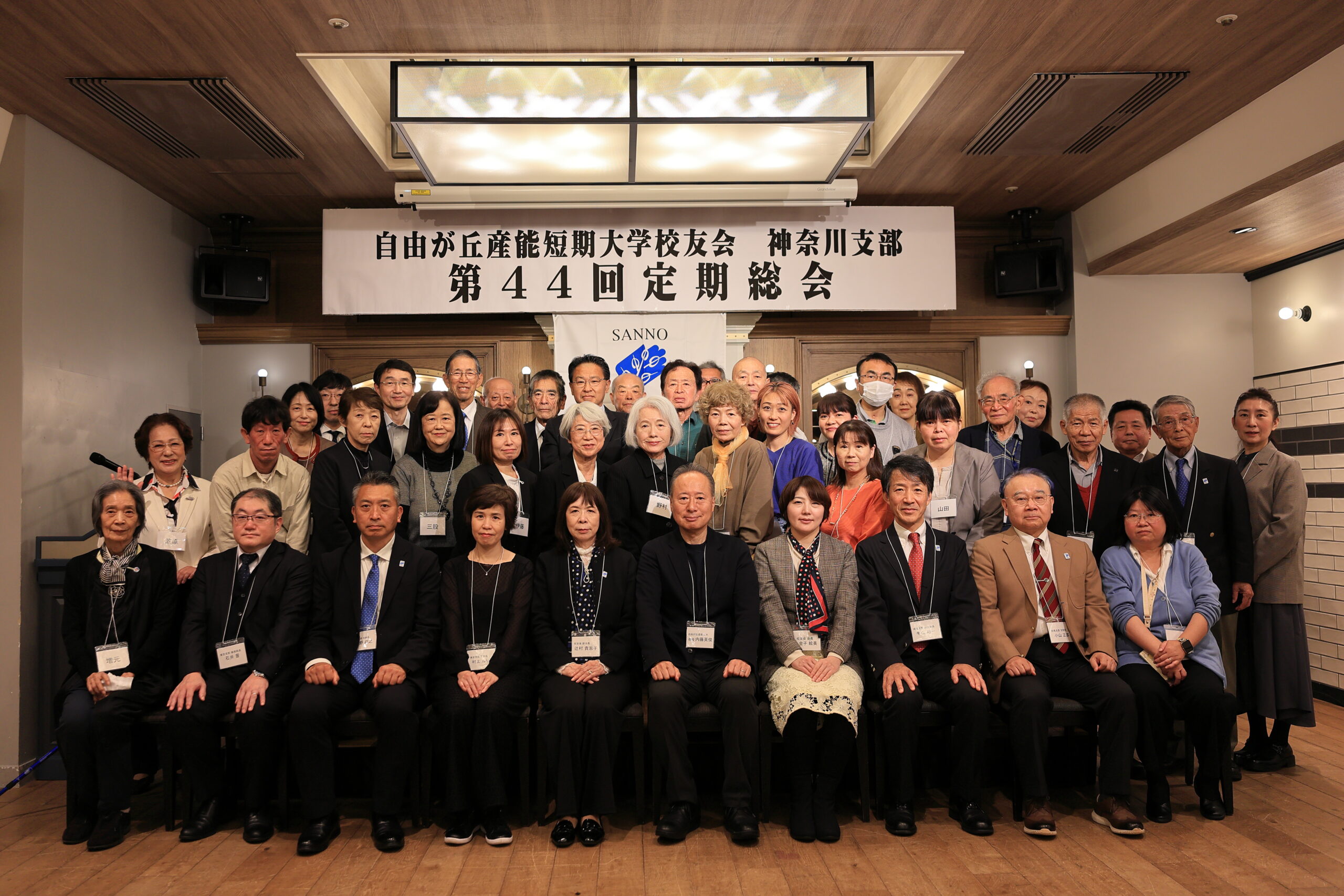 11月9日(日)にHOTEL THE KNOT YOKOHAMAにて「第44回神奈川支部総会」を開催しました。当日は、自由が丘産能短期大学の内藤先生、金子校友会会長、辻村校友会副会長をはじめ、東京・群馬・千葉・茨城・静岡の近隣支部からご来賓をお迎えし、総勢42名様にご参加いただきました。総会では、厳粛な雰囲気の中、活発な事業報告、サークル活動報告、収支報告が行われ、次年度の充実した事業計画と予算が滞りなく承認されました。新たに4名の幹事を迎え、役員体制が一層強化されたことで、定期的なサークル活動など、会員同士の交流を深められる今後の計画を心より楽しみにしております。(神奈川支部 Y.S.)