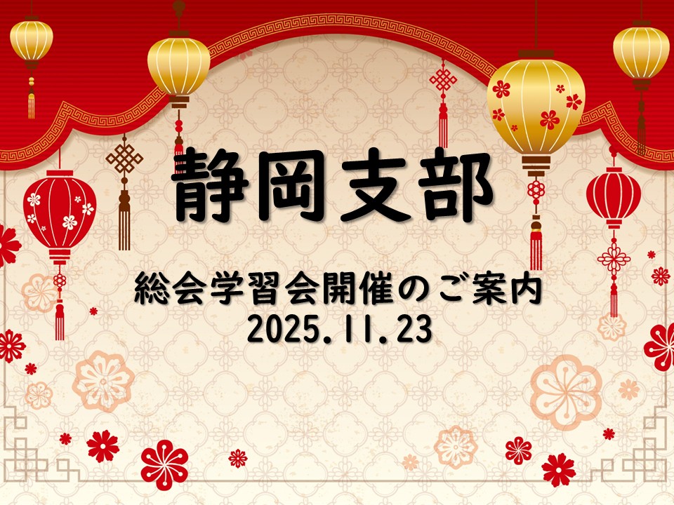 りなくご健勝のことと存じます。静岡支部では、毎年、秋に支部総会と学習会を開催しております。多数の皆様に、ご出席いただきたくご案内申し上げます。◆総会日時 2025年11月23日(日) 13:30~(13:00から受付開始)会場 ふしみやビル 4階 401会議室会議室 静岡市葵区呉服町2-3-1 ◆学習会時間 14:30~講師 楊事務局長テーマ 「Let's Go 台湾」 「文化」から「言語」まで、異文化を多角的に学ぶ旅に出かけましょう、疑似体験を通して、海外旅行の魅力を味わいましょう! ◆懇親会 場所が決まってからご案内します◆参加の申し込みチラシのQRコードまたはまたはメールshizuokasanno@gmail.com へ11月15日迄。 本学の卒業生及びその関係者であれば、何方でも出席歓迎です。静岡支部事務局 楊(やん)