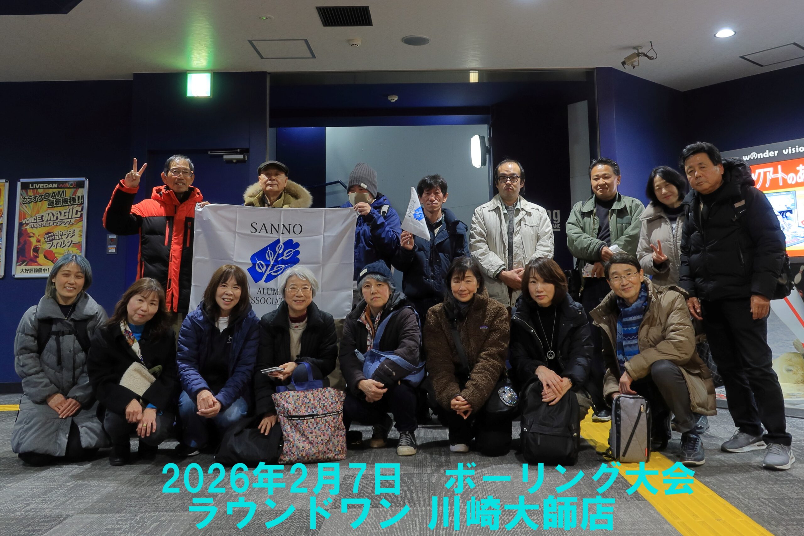 雪の降る寒い2月、皆様にお会いするため川崎のボウリング場へ出掛けました。 ストライクやスペアが出るたびに歓声や拍手、ハイタッチが生まれ、会場は次第に熱気に包まれていきました。 懇親会へ向かうバスの中から会話も弾み、会場では順位発表やお知らせの後、爽やかなドリンクとお食事を楽しみ、心身ともにリフレッシュするひとときとなりました。(参加者の感想) 2026年2月7日(土)開催のボウリング大会に16名、懇親会に18名の皆様にご参加いただきました。 また、校友会副会長の辻村さんより「辻村特別賞」が贈られ、受賞者は大変喜ばれていました。 関西支部長の北原さんは懇親会にご参加いただき、10月開催予定の京都校友大会のお話で会場を盛り上げていただきました。 お二人のご参加、誠にありがとうございました。