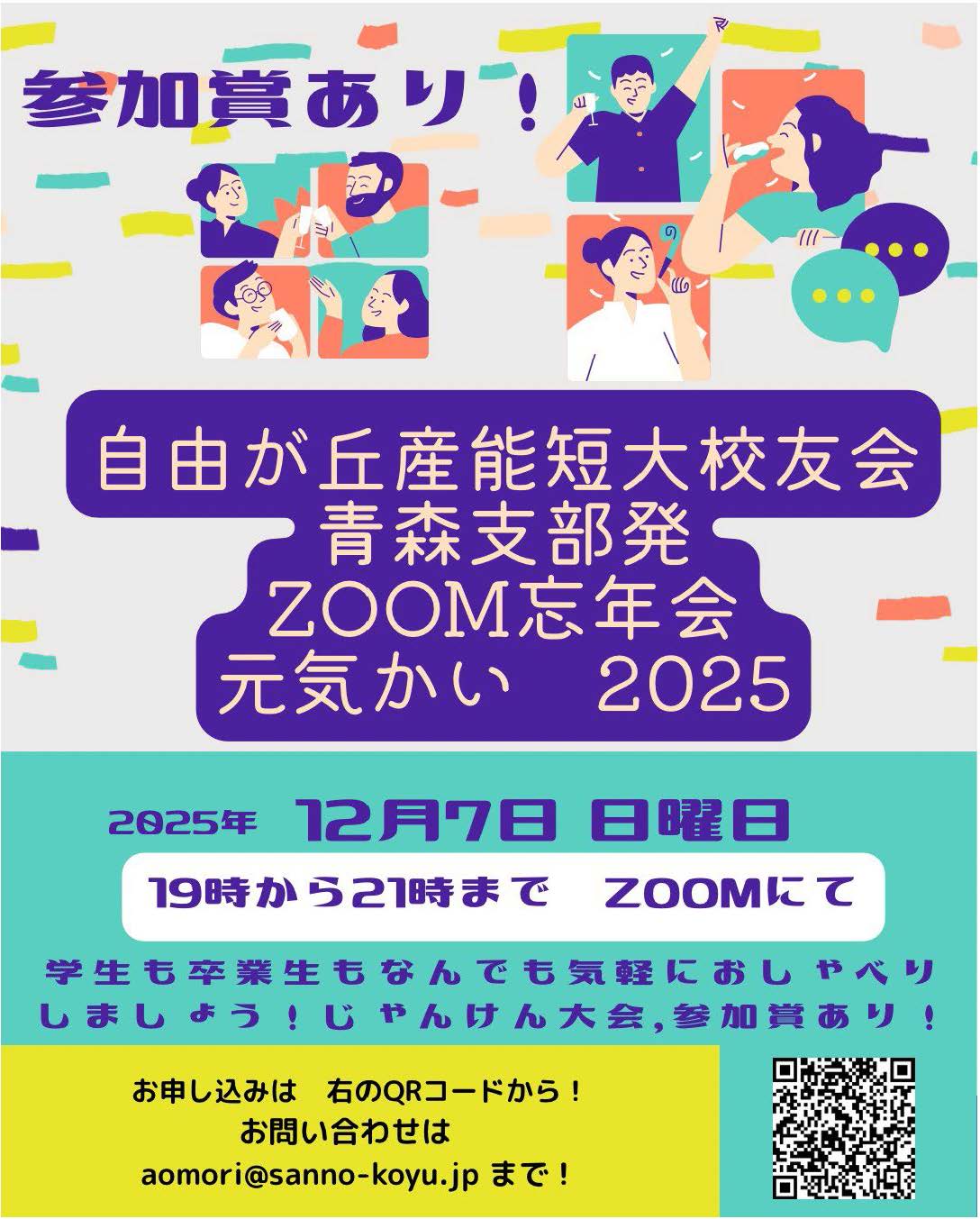 お申し込みはチラシのQRコード、もしくは aomori@sanno-koyu.jp まで!