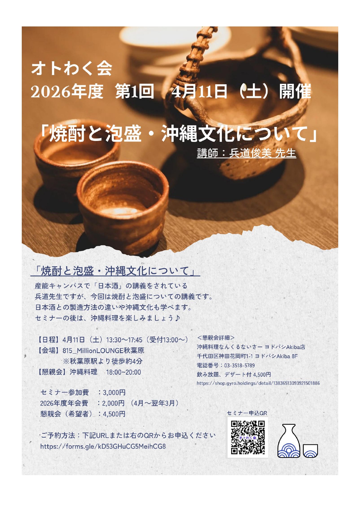 兵道先生ですが、今回は焼酎と泡盛についての講義です。