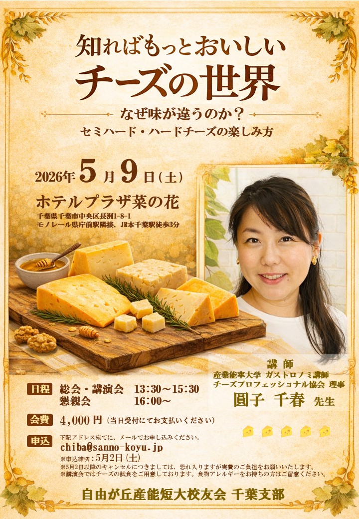 ※セミナーでは乳製品を使用したチーズの試食を予定しております。アレルギーをお持ちの方はあらかじめご確認ください。