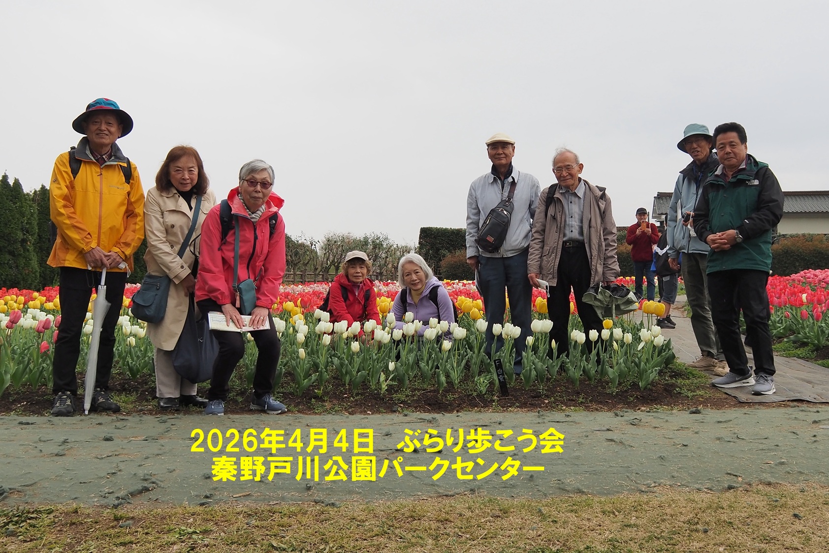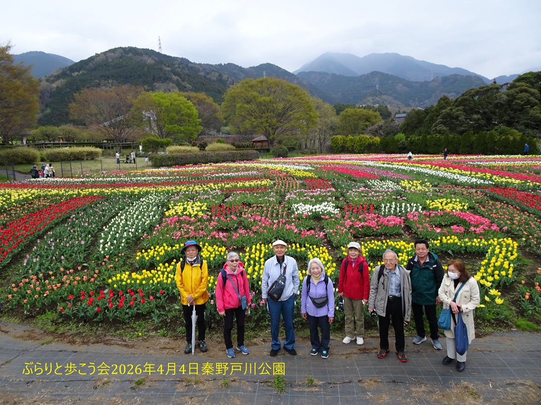 2026年4月4日開催のぶらりと歩こう会「秦野戸川公園でチューリップを見よう⁉」は、曇り空の中、渋沢駅改札前に9名が集合してスタートしました。